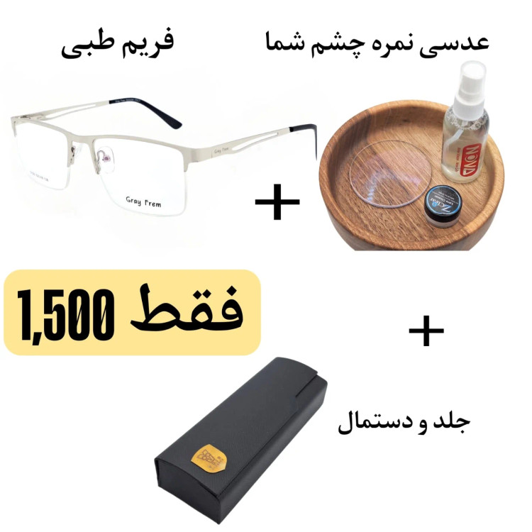 پکیج عینک طبی + عدسی ساخت کُره با نمره چشم شما + جلد و دستمال و اسپری GRAY FREM Size : 52 مناسب آقایان و خانم ها مناسب دید دور و نزدیک فقط با 1,500 عینک طبی با نمره چشم خودتون رو داشته باشید. ساخت عدسی ۱ ساعته و سپس ارسال با تیپاکس و پست پیشتاز اول قیمت کنید و بعد با خیال راحت ثبت سفارش بفرمایید