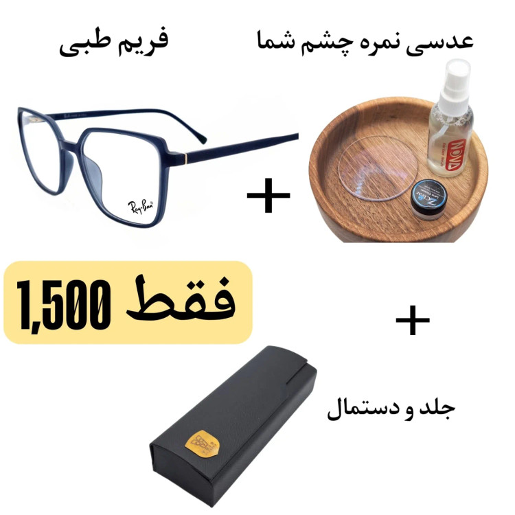 پکیج عینک طبی + عدسی ساخت کُره با نمره چشم شما + جلد و دستمال و اسپری 50 : RAYBAN Size مناسب آقایان و خانم ها مناسب دید دور و نزدیک فقط با 1,500 عینک طبی با نمره چشم خودتون رو داشته باشید. ساخت عدسی ۱ ساعته و سپس ارسال با تیپاکس و پست پیشتاز اول قیمت کنید و بعد با خیال راحت ثبت سفارش بفرمایید