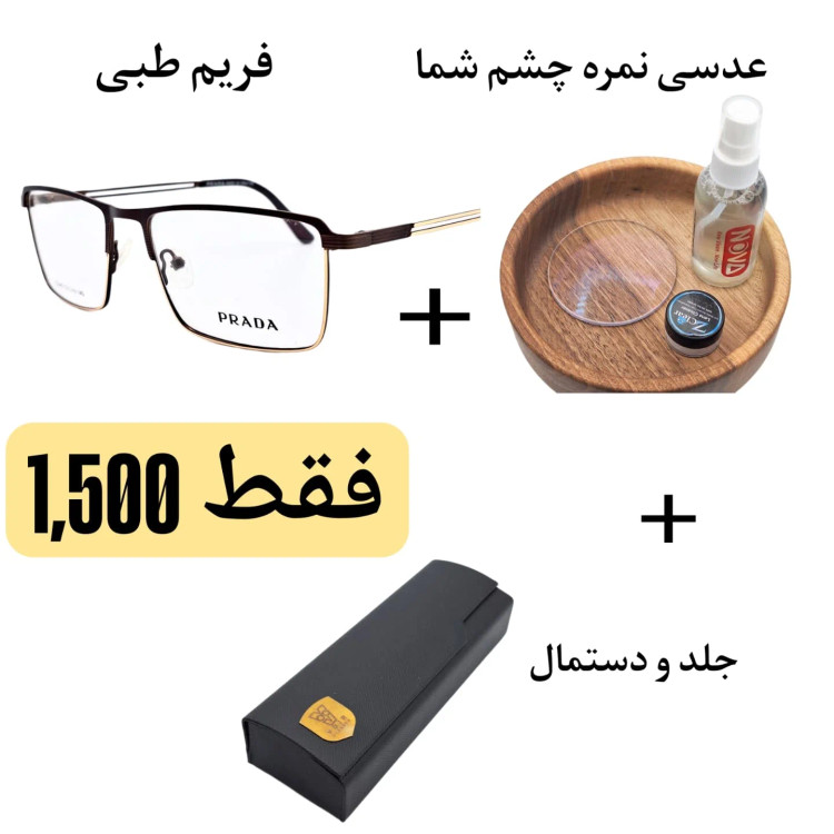 پکیج عینک طبی + عدسی ساخت کُره با نمره چشم شما + جلد و دستمال و اسپری 53 : PRADA Size مناسب آقایان و خانم ها مناسب دید دور و نزدیک فقط با 1,500 عینک طبی با نمره چشم خودتون رو داشته باشید. ساخت عدسی ۱ ساعته و سپس ارسال با تیپاکس و پست پیشتاز اول قیمت کنید و بعد با خیال راحت ثبت سفارش بفرمایید