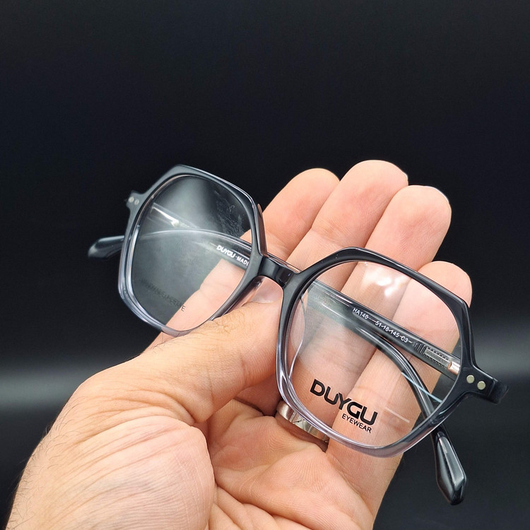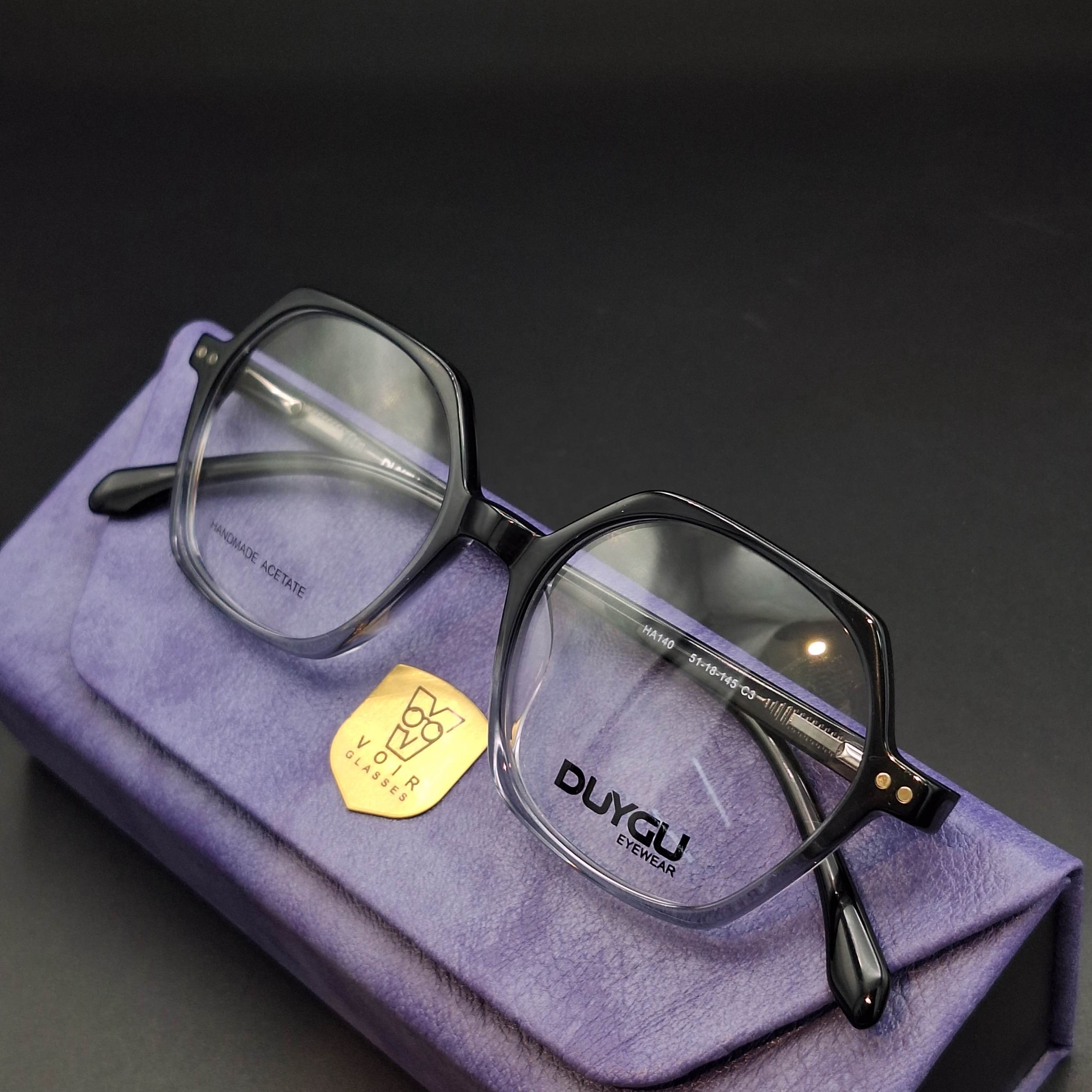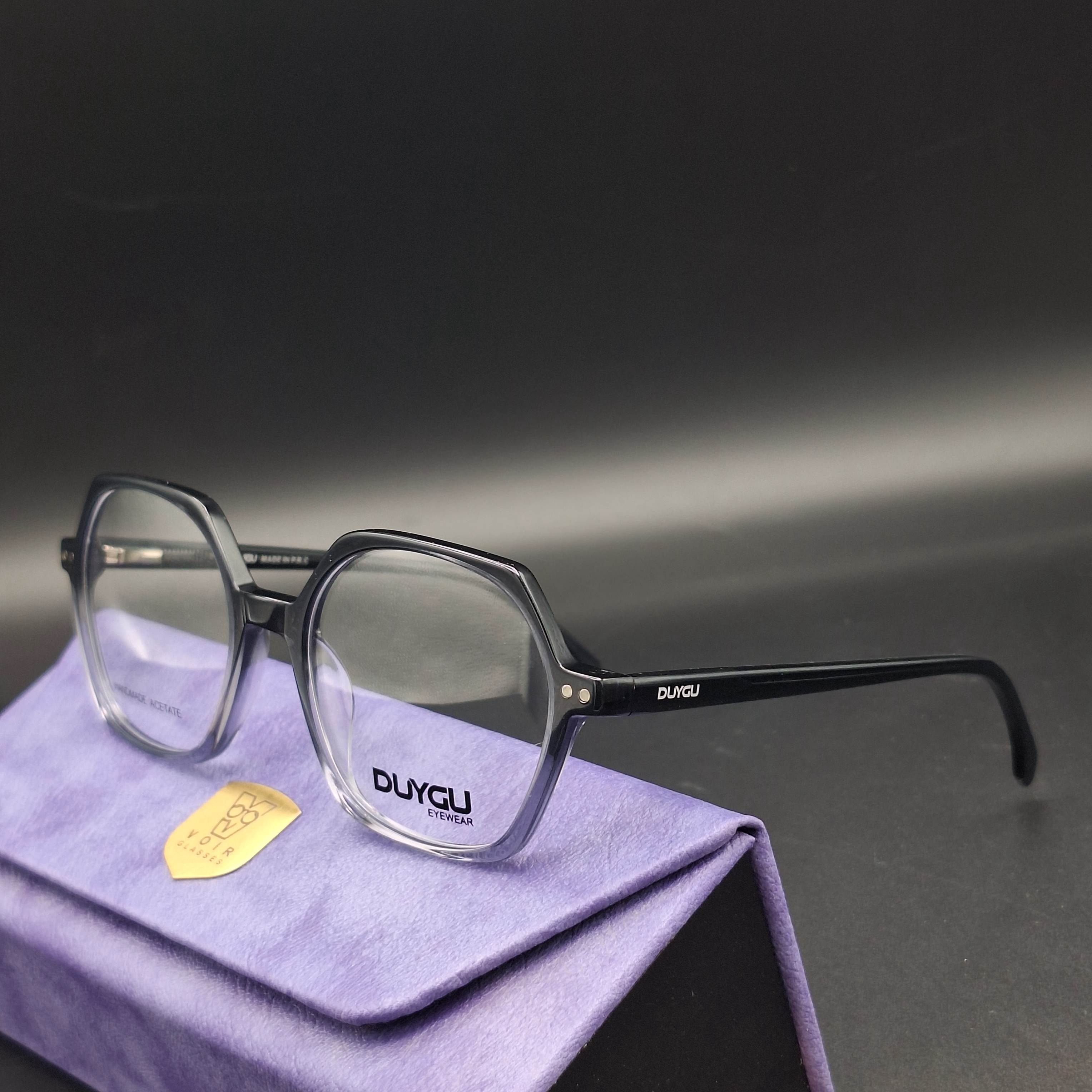 عینک طبی یونیسکس ( مردانه و زنانه ) چند ضلعی کاوردار اورجینال شرکتی از برند DUYGO به همراه پکیج کامل ( با امکان سفارش ساخت عدسی با نمره چشم شما ) کد DY60621