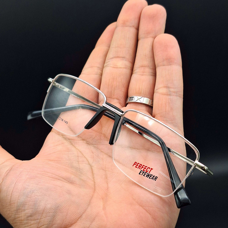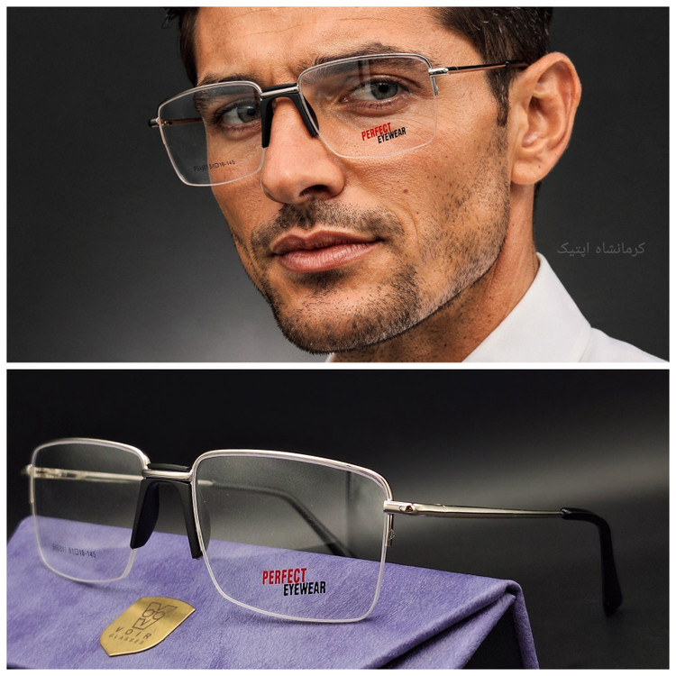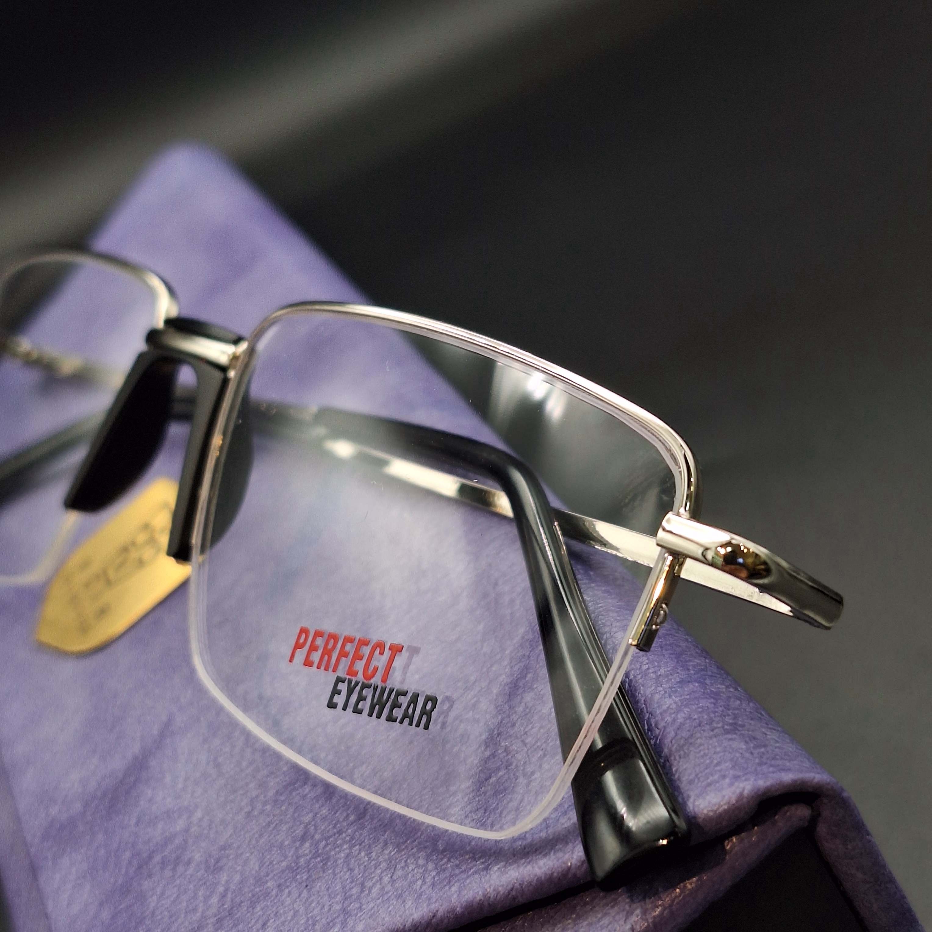 عینک طبی فلزی نیم گریف یونیسکس ( مردانه و زنانه ) برند PERFECT با دماغی یک تکه کیفیت ضمانتی ( با امکان سفارش ساخت عدسی با نمره چشم شما ) به همراه پک کامل کد P3036